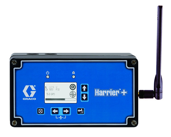 Graco Harrier-regelaars met wissel- en directstroomvoeding bieden een eenvoudige uit-/aantijdsregeling met de verbeterde intelligente besturingsmogelijkheden van de Harrier EZ en de Harrier+-regelaar. De Harrier+ bestuurt op afstand de chemische injectorpompen en heeft een tankpeilmonitor die werkt via SCADA of via mobiele connectiviteit.